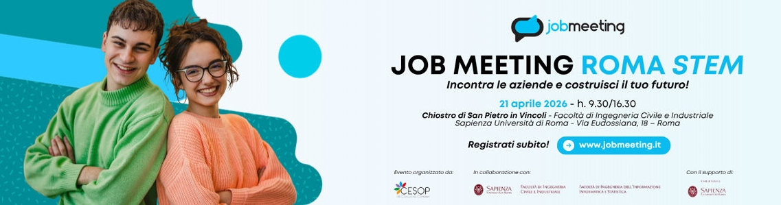 Martedì 21 aprile 2026, dalle 9.30 alle 16.30, presso il Chiostro di San Pietro in Vincoli (Via Eudossiana 18, Roma), si terrà la nuova edizione del Job Meeting ROMA STEM, l’evento di orientamento al lavoro e incontro con le aziende rivolto a studenti, laureandi e laureati dell’area STEM.